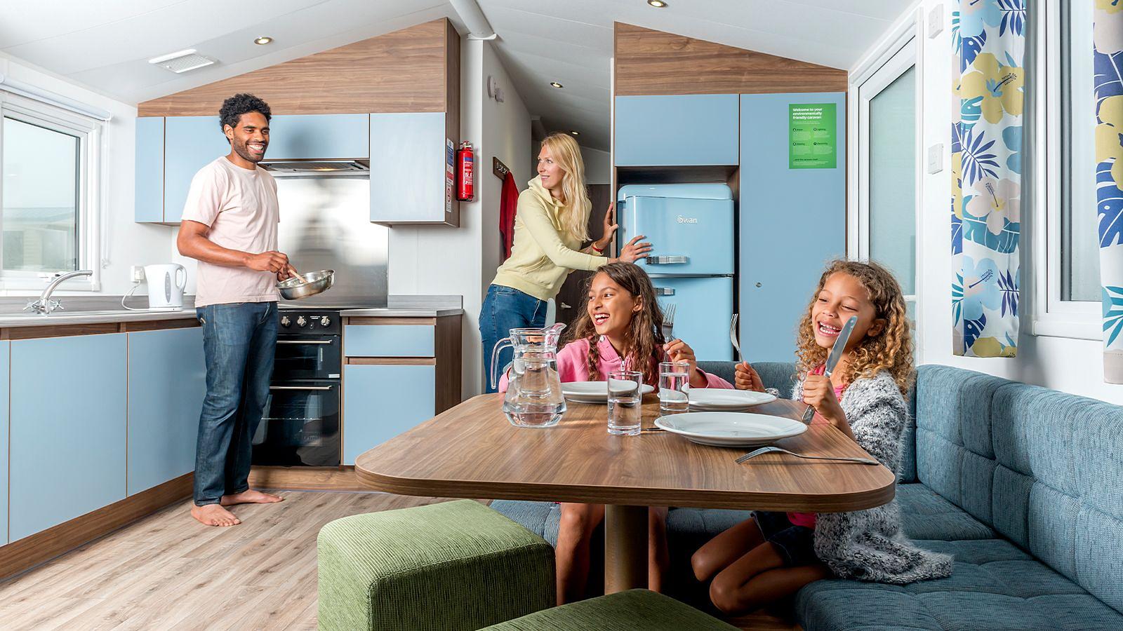 There's three affordable options - Bronze, Silver and Gold - at our North Devon caravan sites throwing together surf-style chic and all the mod cons to create a fabulous chillout zone for lazy days and comfy nights at the coast. All our accommodation is designed solely with our guests in mind. You'll always enjoy double glazing, central heating, USB charging in every room, a large fridge-freezer and a dreamy Comfort Plus mattress in the main bedroom. And when you upgrade to Gold, you'll experience affordable luxury without feeling it in your wallet. These digs are available on all 3 of our holiday parks in Woolacombe and are the perfect setup for a wave-filled, worry-free holiday.