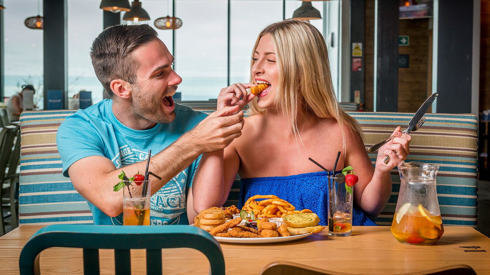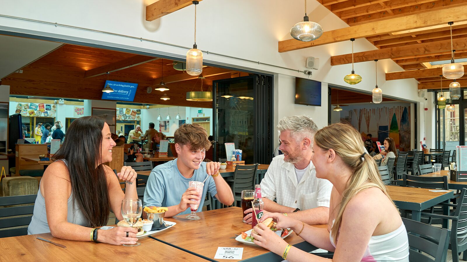 The atmosphere is fun and informal, come along for breakfast until 11.30am then from 12noon lunch and dinner every day. For the latest menu and to order for table service please see the latest menu and order for table service.