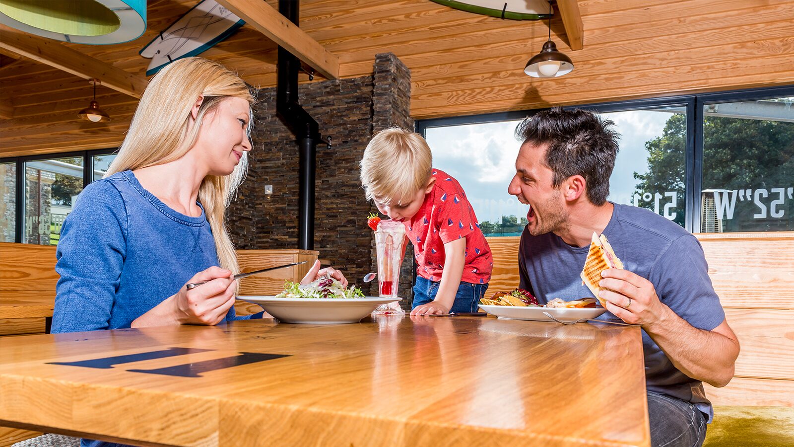 Sea air's pretty good for working up a big appetite... then again so's all the stuff we've got to do. Well you're not going to go hungry on our Devon holiday parks 'cos every day our relaxed venues are cooking up a real treat. We're in rural Devon by the beach so the last thing you're going to expect is branded fast food chains. So yep, you won't find them here. Instead our talented chefs put their heart 'n' soul into locally-landed fish, big scrummy platters and fresh dough pizza in our surf-style café bars and traditional pubs.