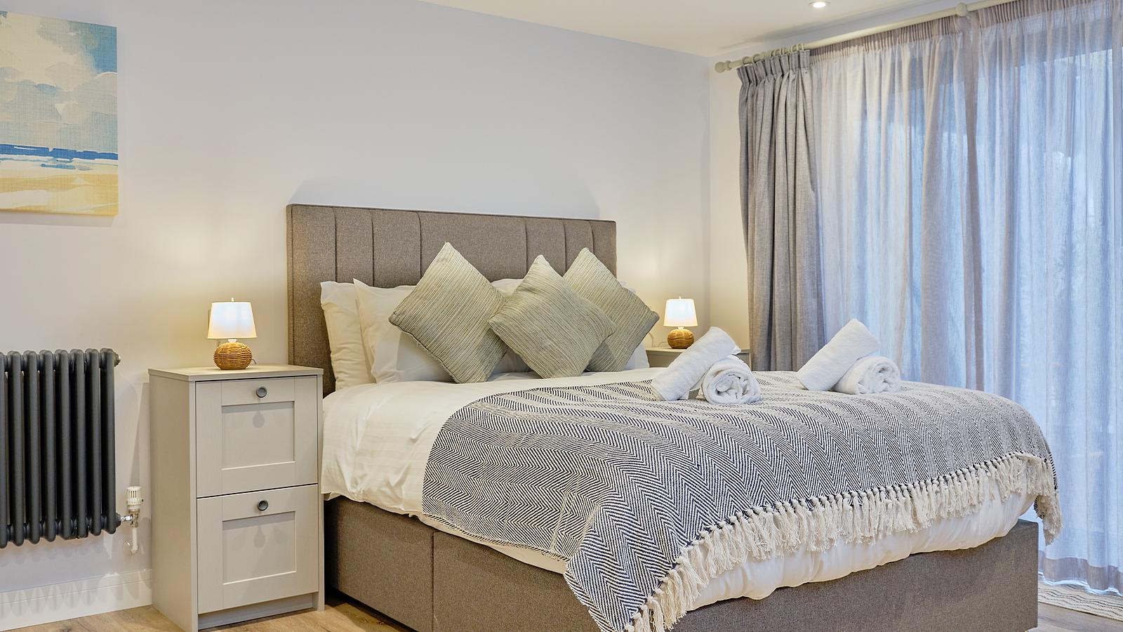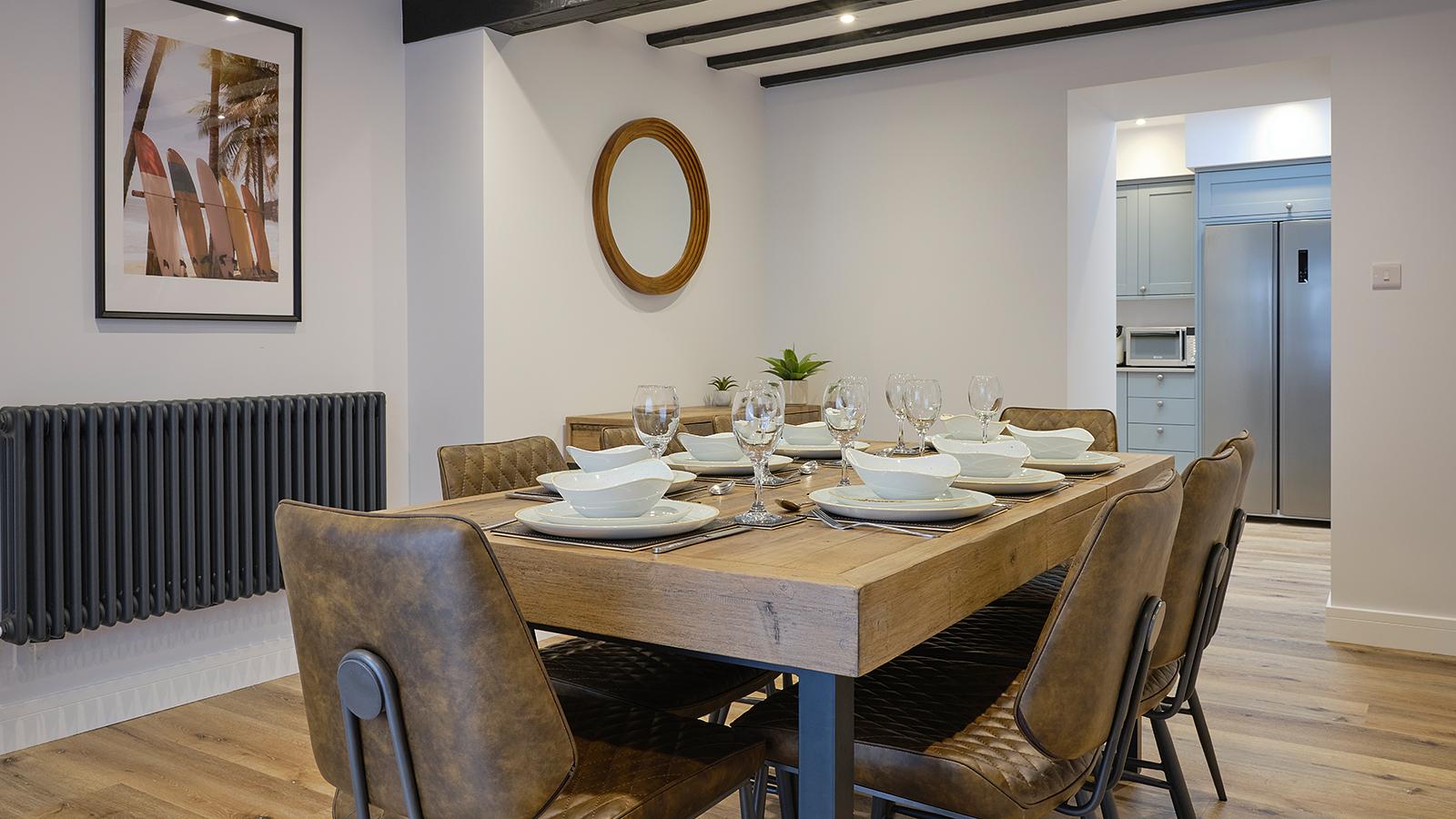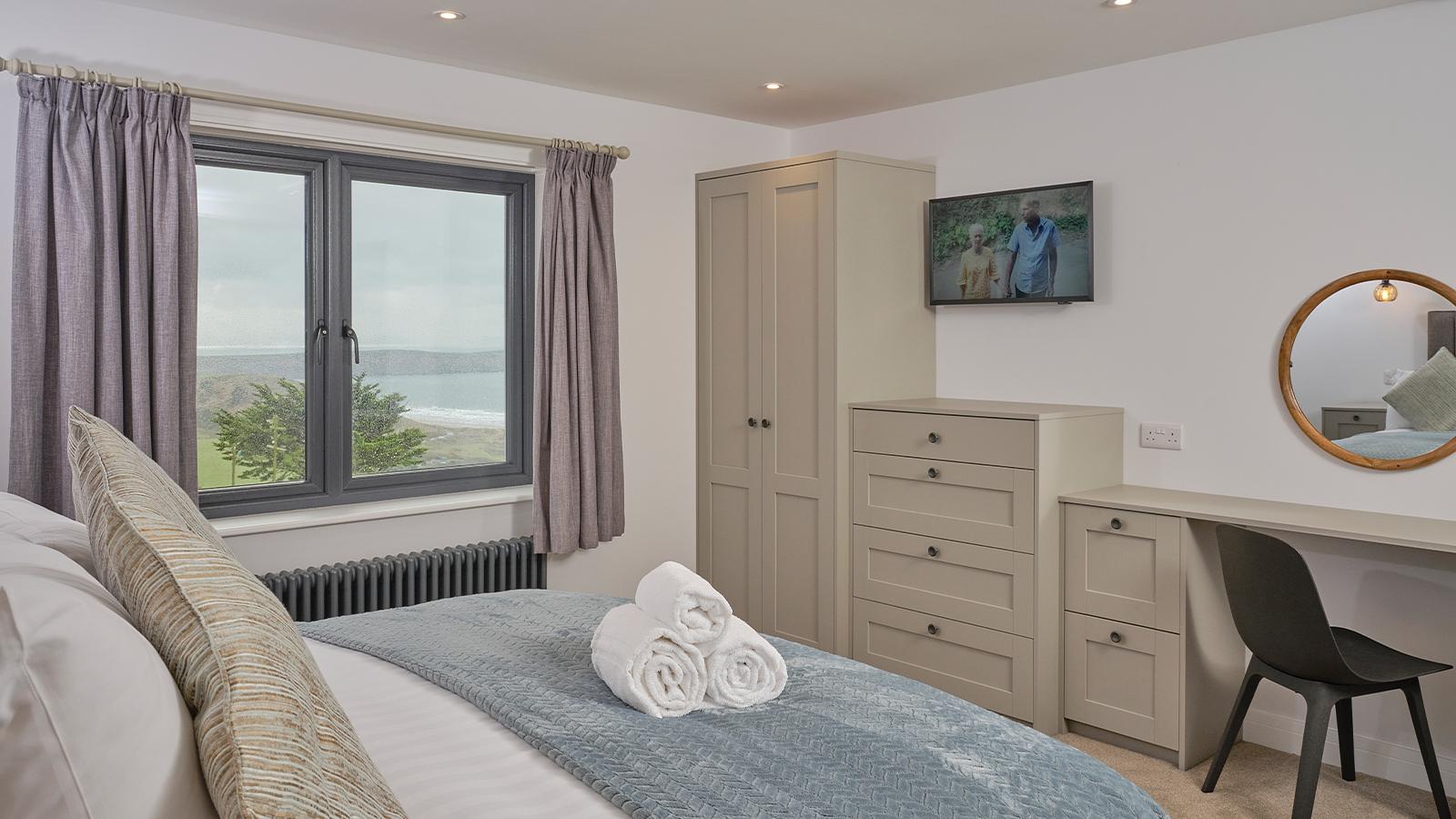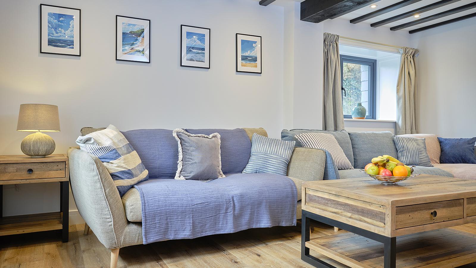 Entirely refurbished in 2026, spacious and luxurious Farmhouse with beautiful sea views sleeping up to 8 with two large master kingsize each with dressing table and two twin (3' beds). Ground floor kingsize bedroom has sliding doors leading to the patio and steps leading to a full bathroom with bath with overhead shower. First floor double bedroom has an en-suite WC and shower. Family bathroom with shower. Lounge with freestanding sofas and 50” flat screen TV with DVD player and Bluetooth speaker. Separate dining room with table and chairs and sliding doors leading to the patio. Additional TV in all bedrooms. Enclosed patio with picnic table, gas barbecue and secluded outdoor hot tub. Contemporary farmhouse-style kitchen full height fridge-freezer, dishwasher and coffee maker, utility room with washing machine, tumble dryer and cloakroom WC. Towels and local produce gift pack on arrival. Parking spaces for 2 cars. Centrally heated. Check-in from 4pm.