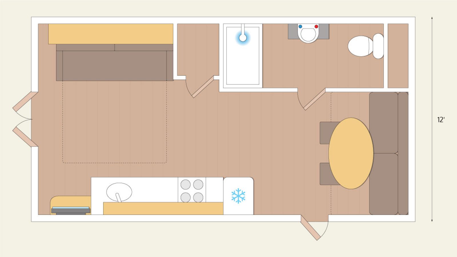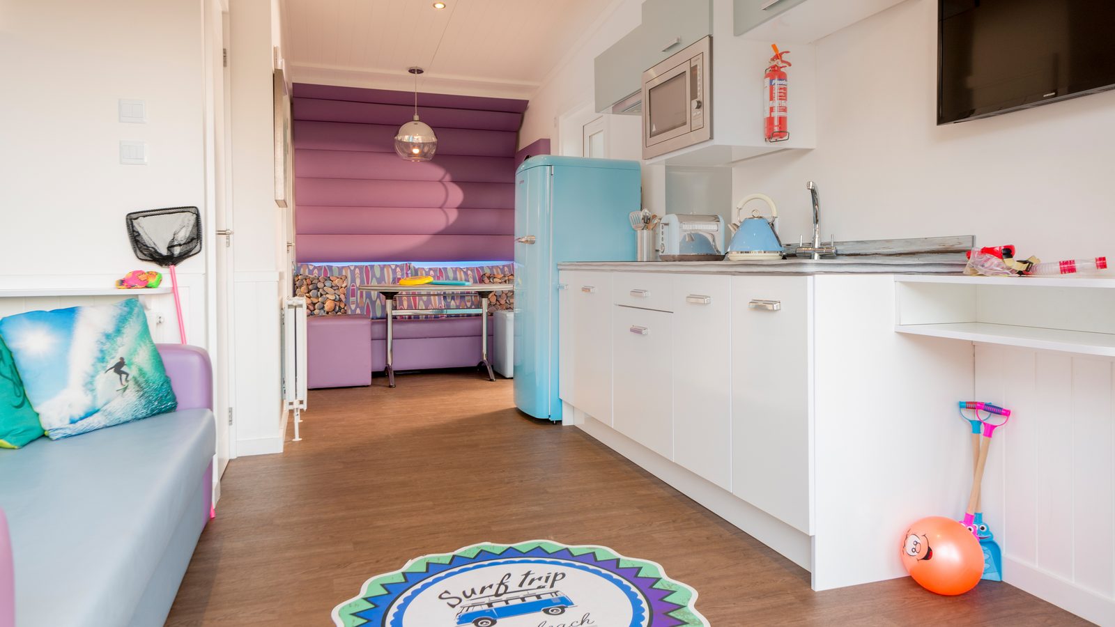 Beds in Surf Pod are 1x king size and 1x double sofa beds within an open plan layout, as this is a glamping experience there are no separate bedrooms or dividers. The large fridge has a small ice box compartment, there is no oven in Surf Pod. Images and layout plans are for guidance purposes only to show the range of accommodation available. The flooring within Surf Pod is lino throughout. In order to maintain the highest levels of hygiene, any hot tubs are refilled on the day of arrival and may not be fully warm for comfortable use until the evening of your arrival. Hot tubs will be emptied from 8am on your day of departure and so you should not use them after this time. All accommodation is accessed by steps. Parking for 2 cars is guaranteed in Surf Village, for any further cars you will need to park away from your accommodation. Bed linen is supplied but as both beds in Surf Pod are sofa beds they will not be made up for your arrival, cots will not be able to be used if both beds are in use. Children under the age of 5 should not use hot tubs.